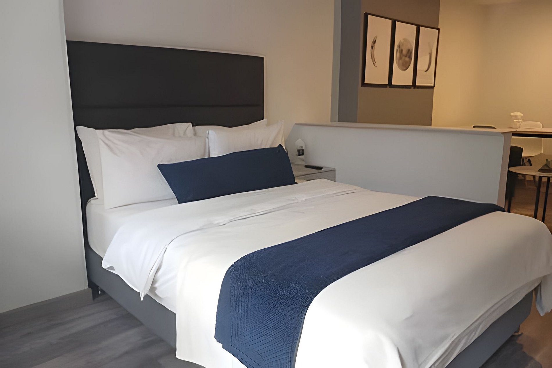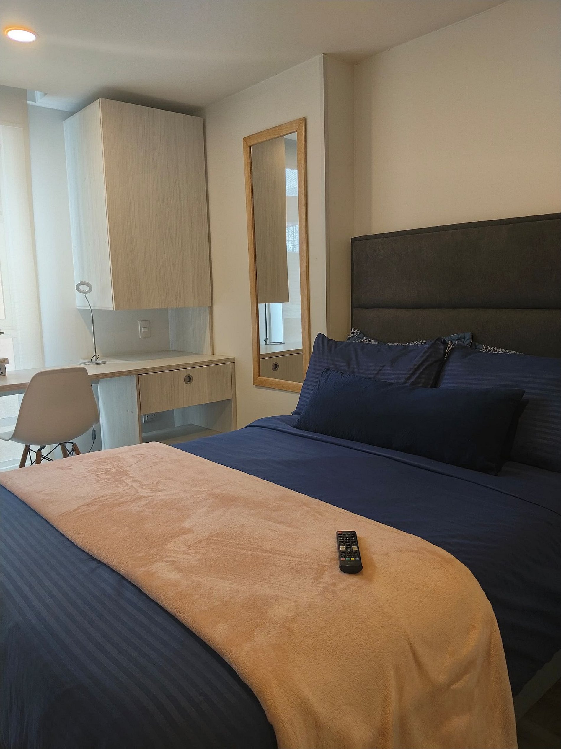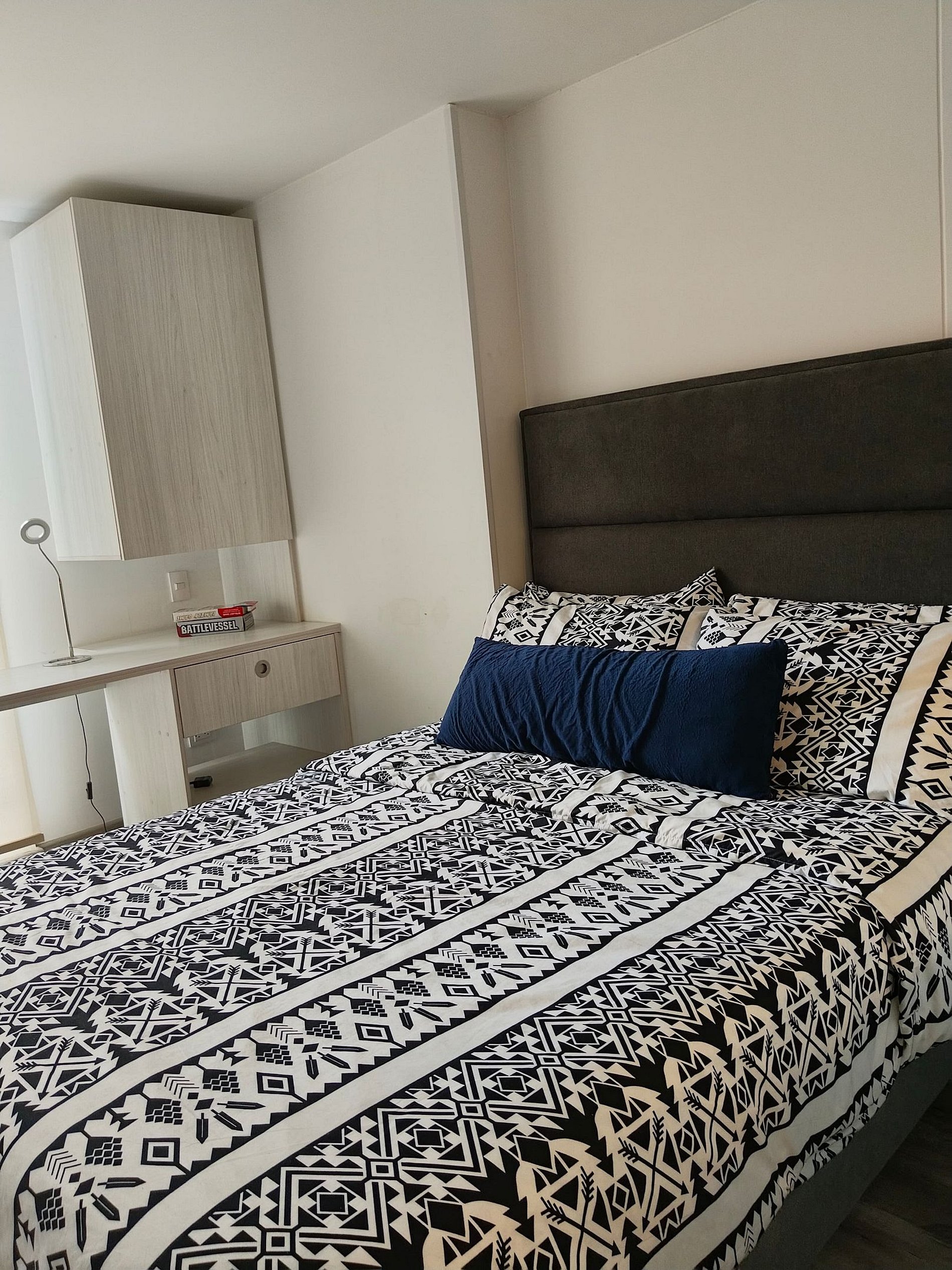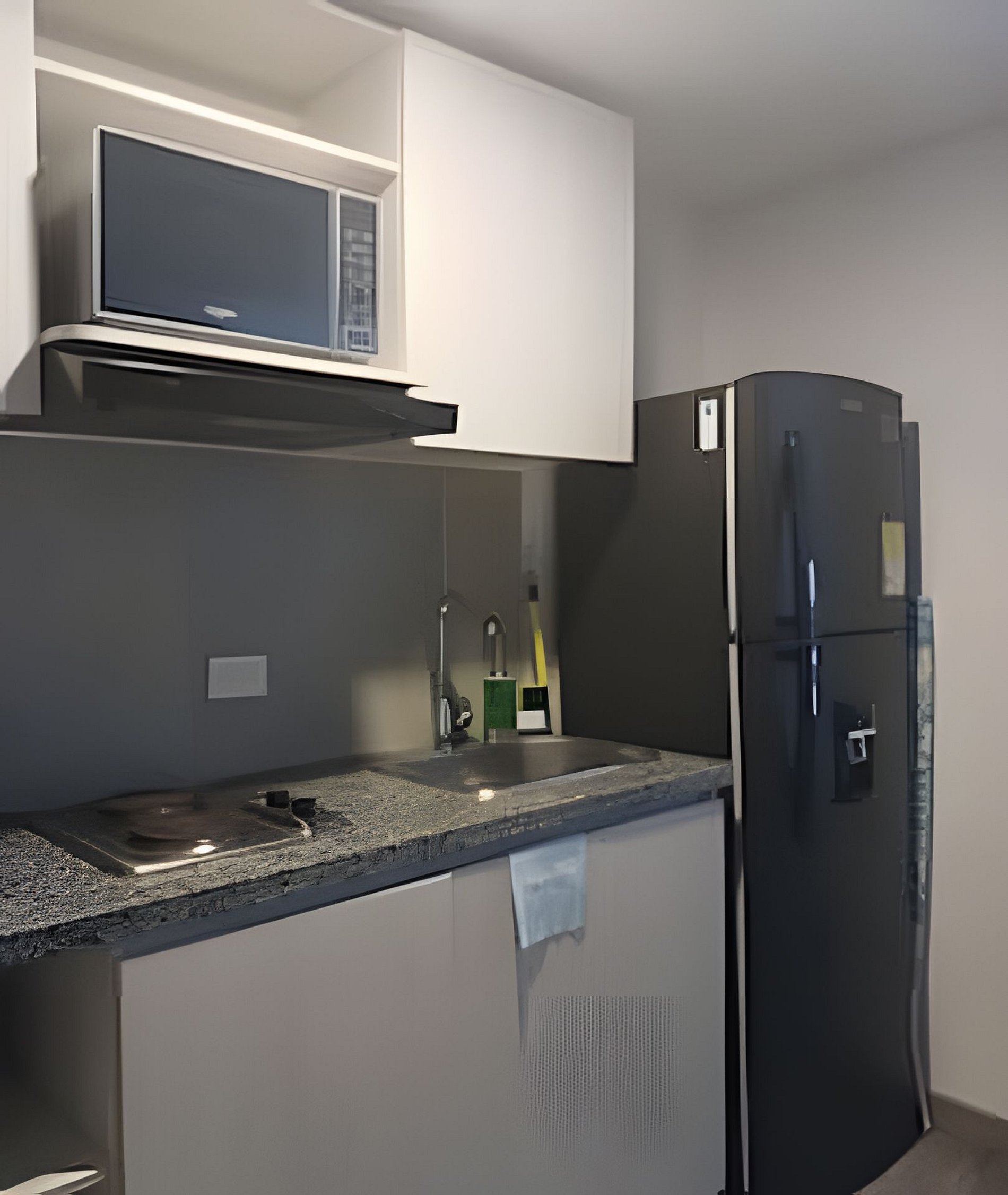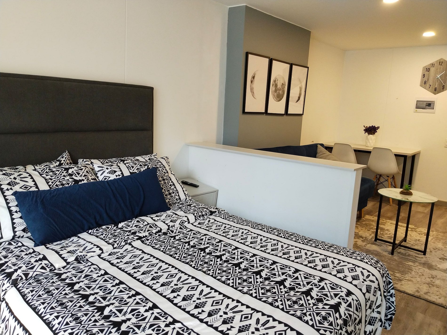 En este espectacular apartaestudio completo de un solo ambiente que contiene: su dormitorio con cama doble y un sofá cama doble, armario, baño y cocina equipada, comedor, escritorio y un espacio con vista. En el edificio encontraras recepción 24 horas, parqueadero pagando, ascensores, terrazas con vistas espectaculares, zonas de lavanderias y de juegos, sala de star. ¡Será muy fácil planear tu visita!