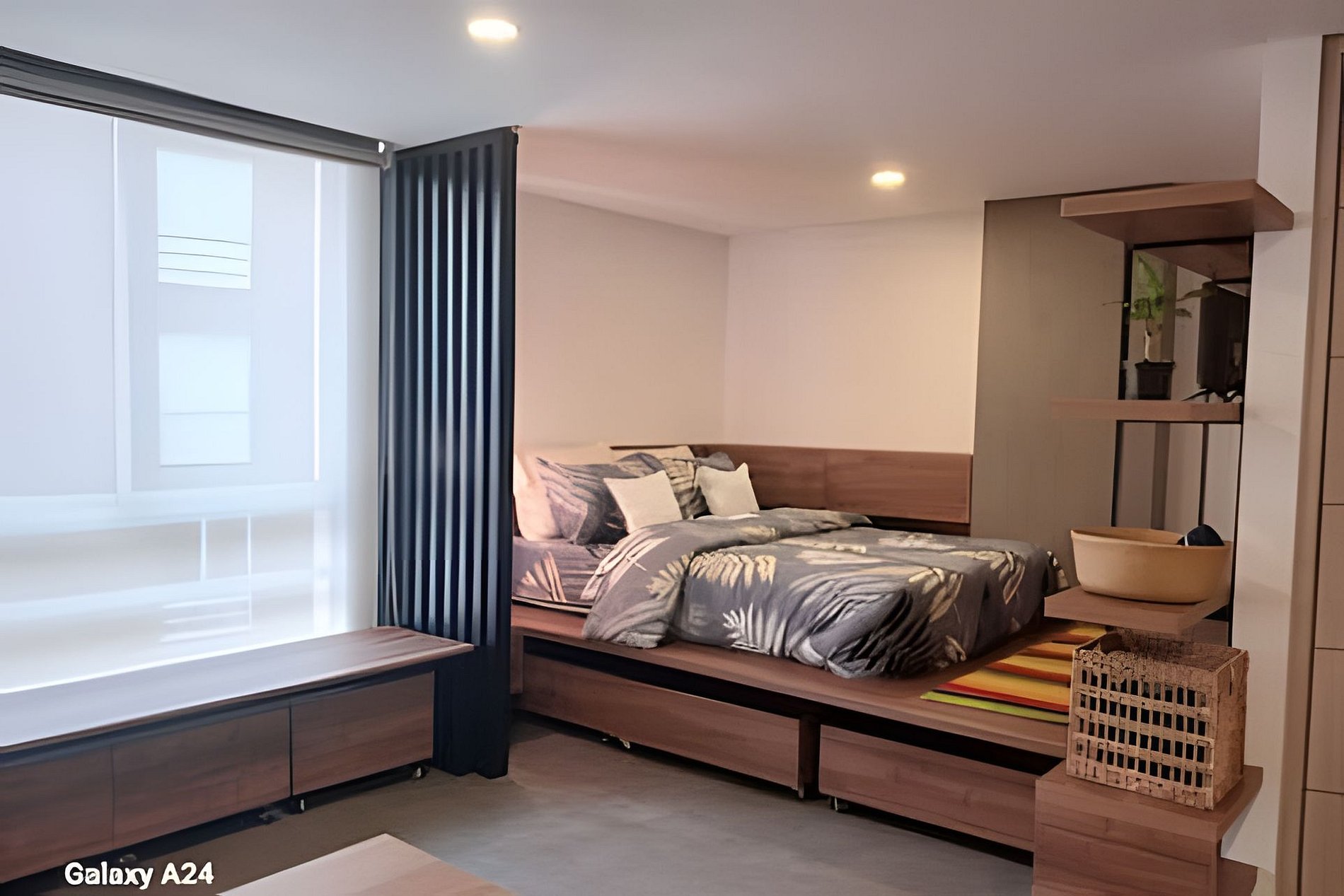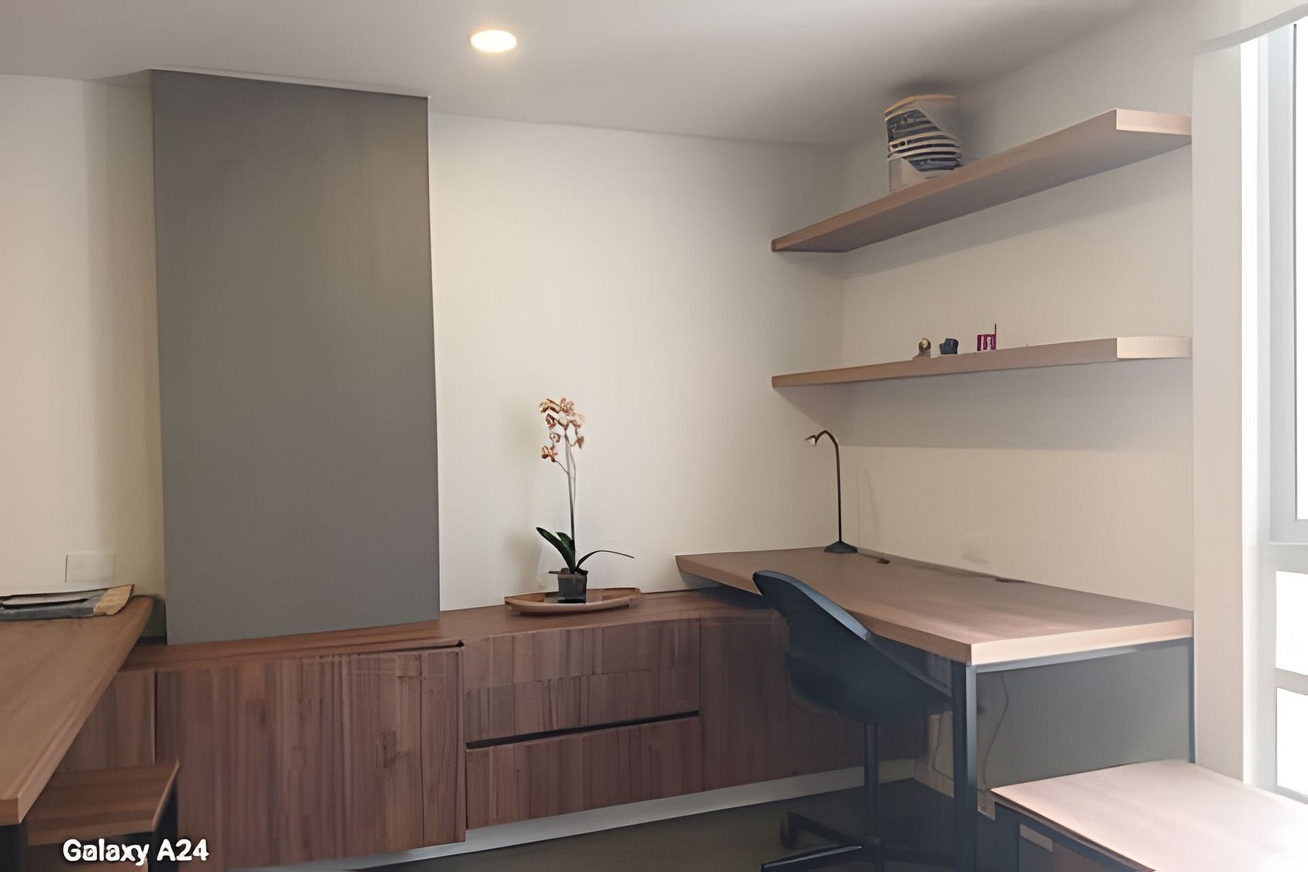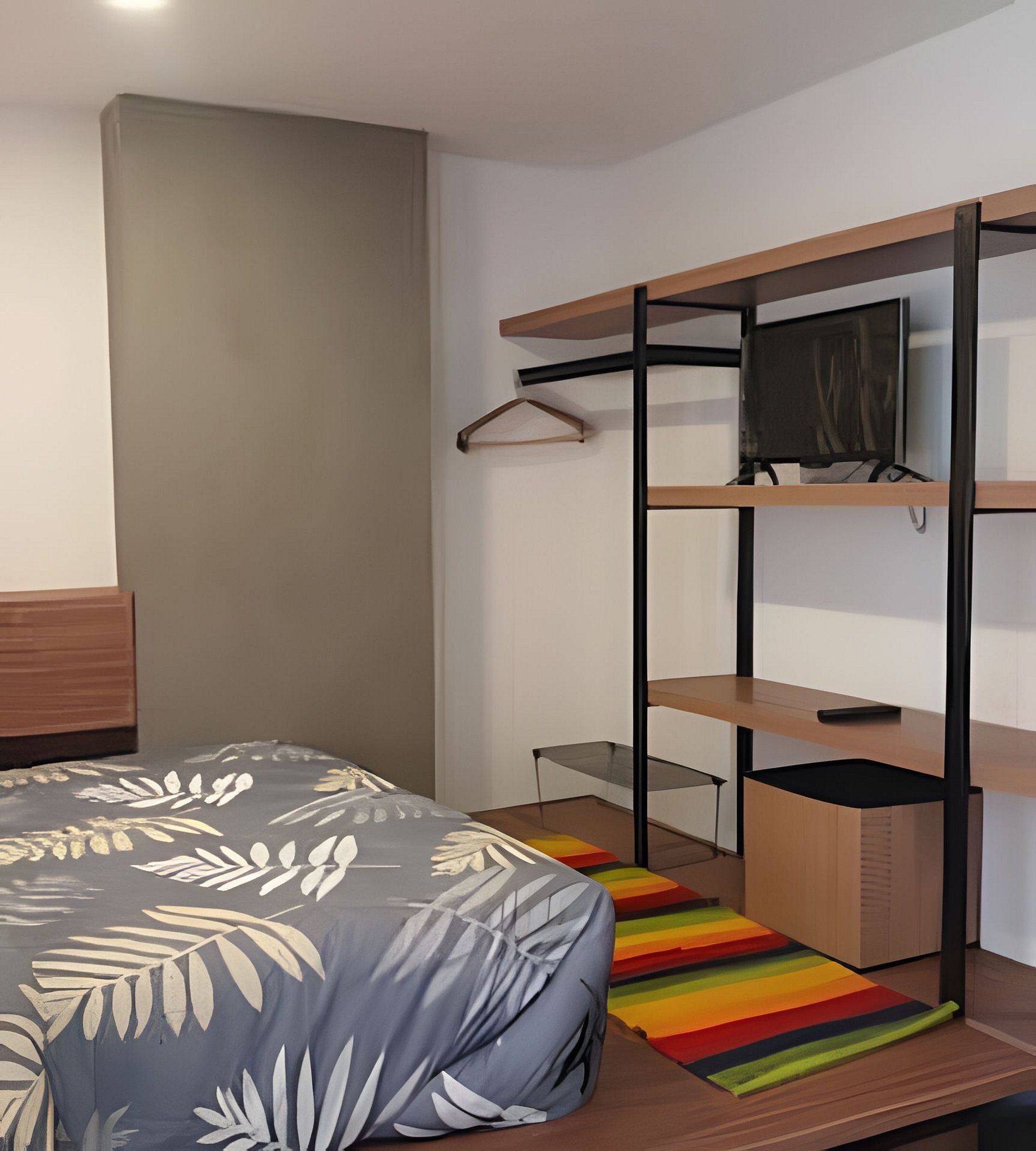 En este espectacular apartaestudio completo de un solo ambiente que contiene: su dormitorio con cama doble y un futón doble el cual esta en los cajones debajo de la cama con su bomba y accesorios, armario, baño,lavadora secadora, cocina con sus amenidades, comedor, escritorio y un espacio con vista. En el edificio encontraras recepción 24 horas, parqueadero pagando, ascensores, terrazas con vistas espectaculares, zonas de lavanderias y de juegos, sala de star. ¡Será muy fácil planear tu visita!
